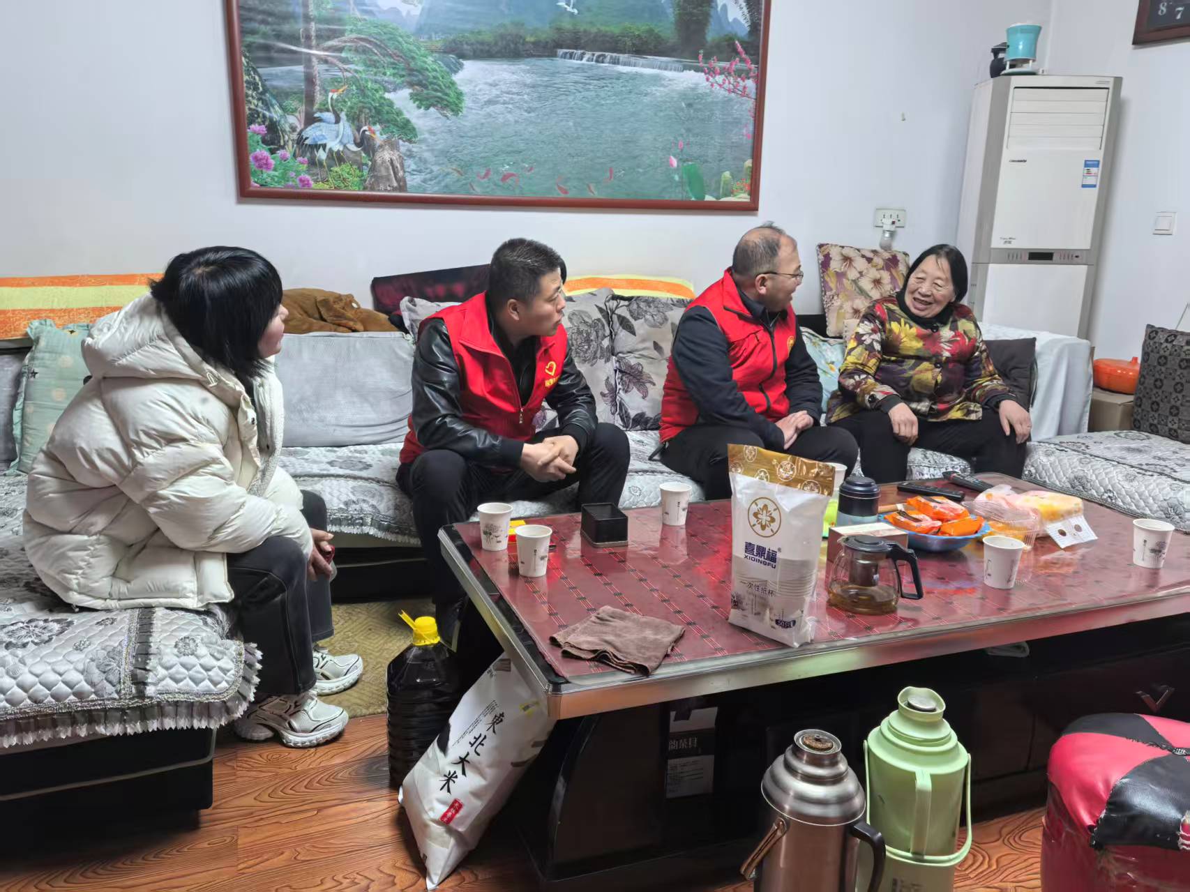 志愿者们带着米面油等生活物资来到4名困难群众的家里,提供力所能及的帮扶,传递组织温暖。