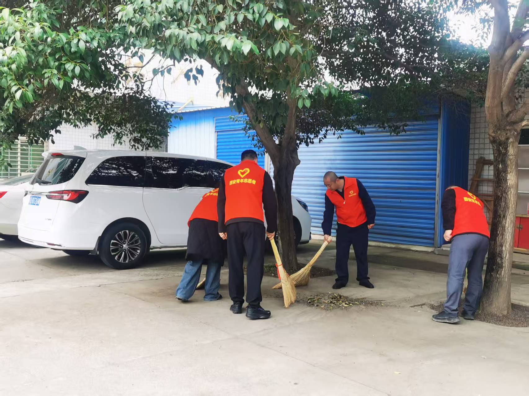 志愿者们分工明确、密切配合,手拿扫帚等工具,深入征稽所小区,开展环境卫生清理行动。