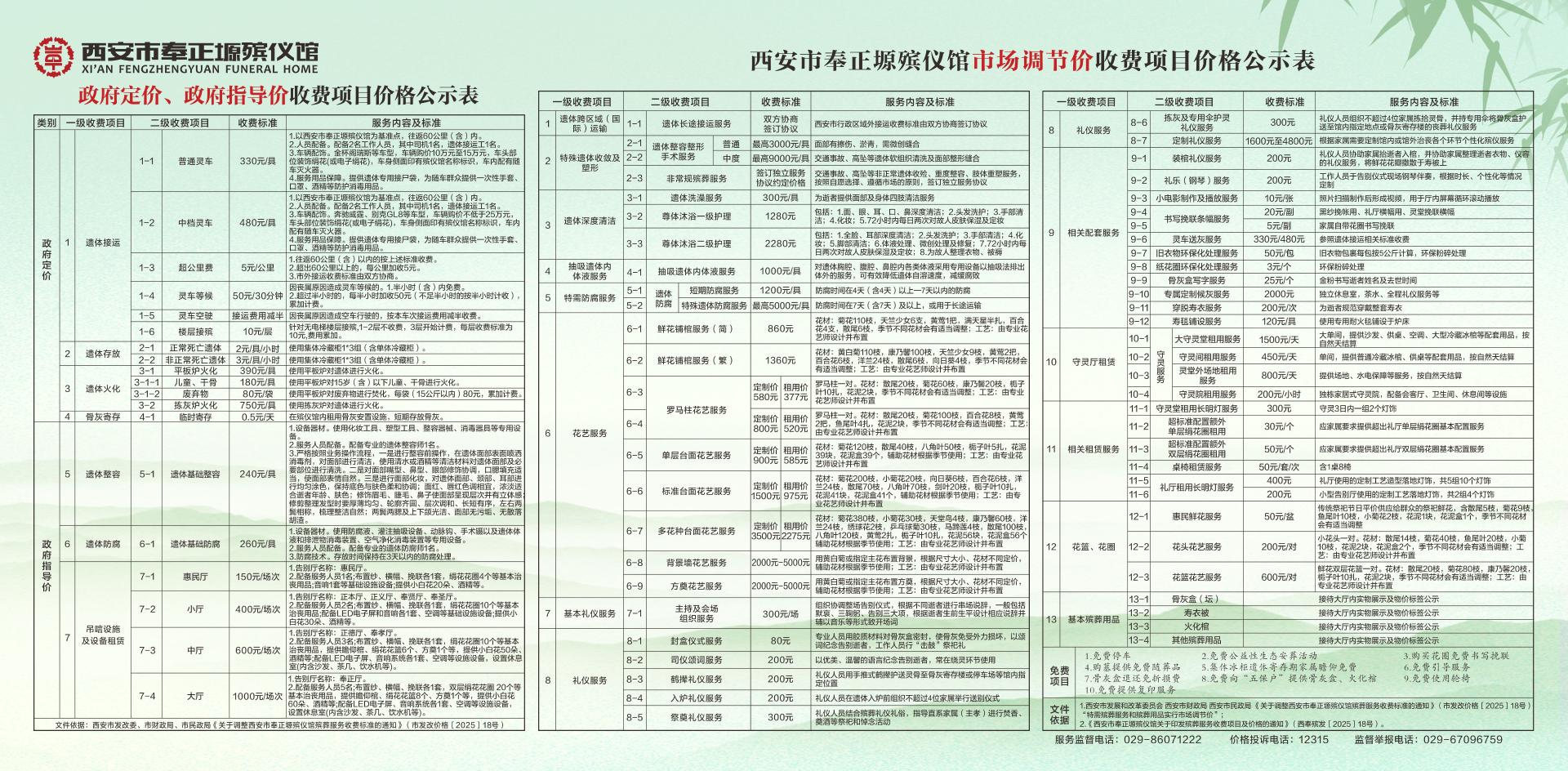 殡仪业务价格公示
